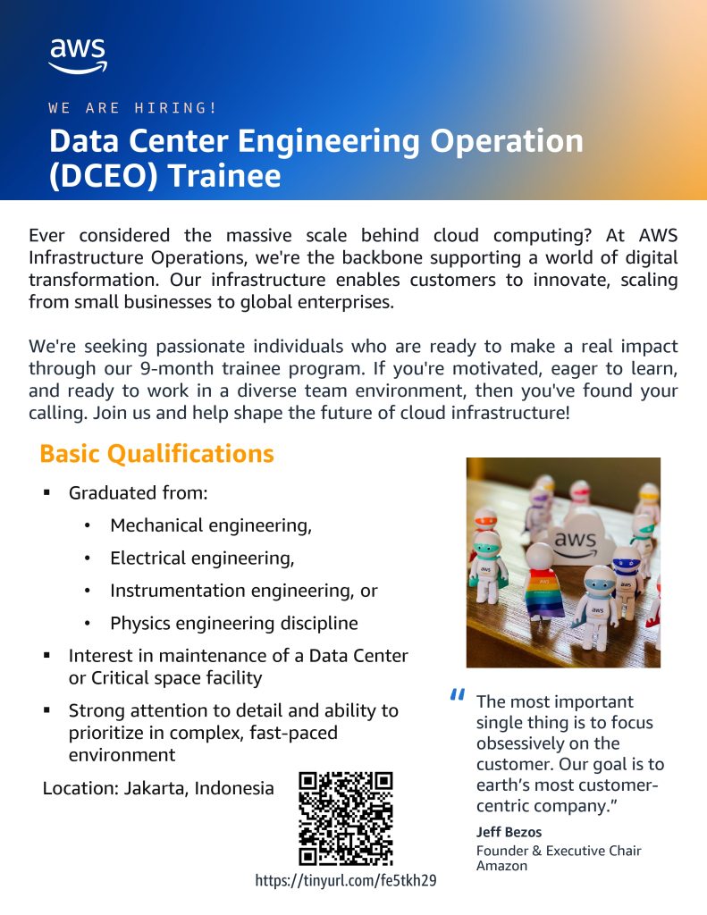 Ready to power the backbone of the cloud? AWS Infrastructure Operations is looking for engineering talents who are passionate about critical facilities!