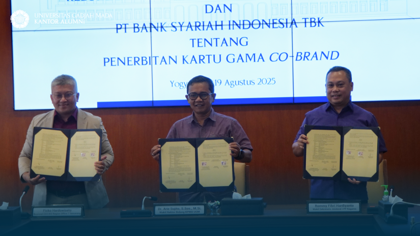 Penandatanganan dokumen dilakukan oleh Wakil Rektor Bidang Kemahasiswaan, Pengabdian kepada Masyarakat, dan Alumni UGM, Dr. Arie Sujito, S.Sos., M.Si.; Wakil Sekretaris Jenderal I Pengurus Pusat KAGAMA, Rommy Fibri Hardiyanto; serta Regional CEO Region Office VII Semarang PT Bank Syariah Indonesia Tbk, Ficko Hardowiseto.