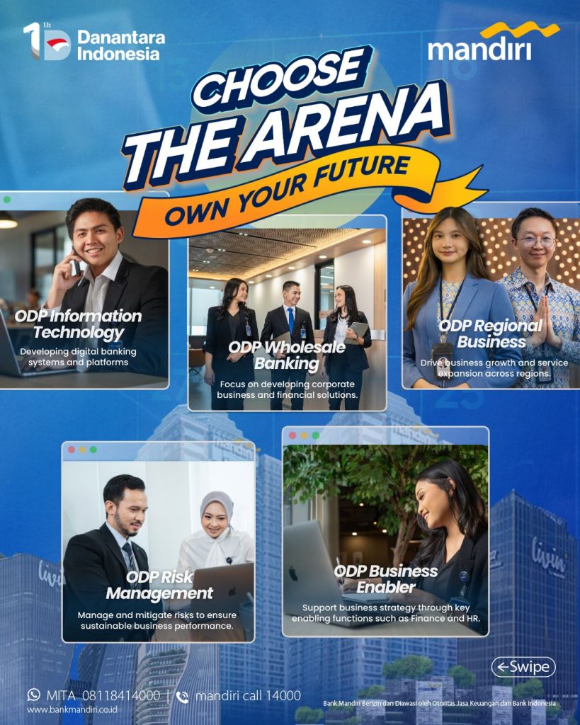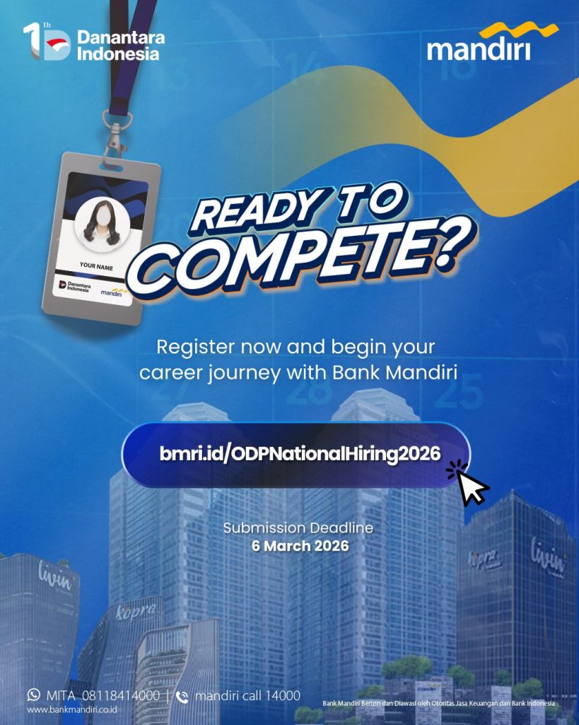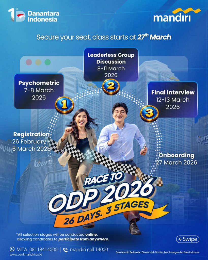 Bank Mandiri resmi membuka National Hiring ODP 2026 melalui full end-to-end digital recruitment serentak se-Indonesia.