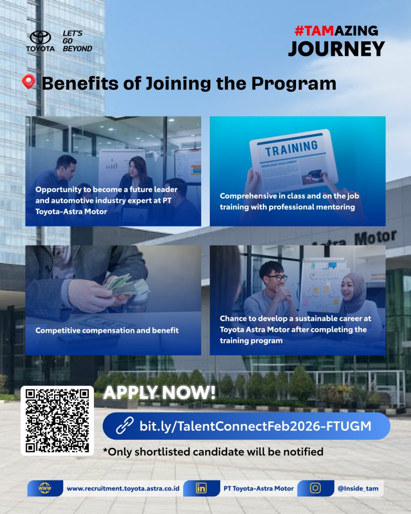 UGM students, ready to level up your career? This is your chance to join the Officer Development Program (ODP) at PT Toyota-Astra Motor🚀